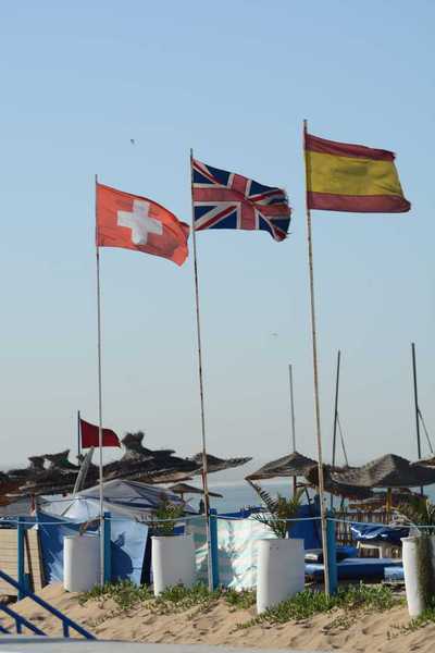 Vor dem Hotel die Promenade mit den zwischenzeitlich bekannten "fliegenden Händlern". Dahinter direkt der breite, goldene und lange Sandstrand von Agadir. Vor allem zum Sonnenuntergang ein
