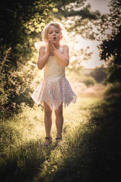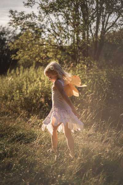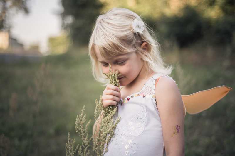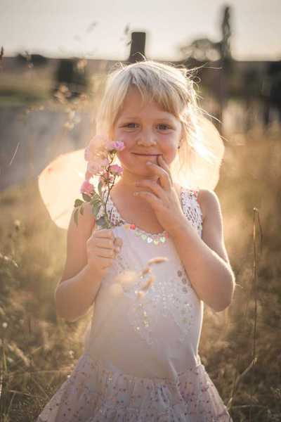 Also flitzte sie strahlend ins Bad und kam frisch "gestylt" wieder raus. Noch eine Blume mitgenommen und die kleinen Flügelchen und ab mit uns ins Grüne. Ein herrlich lauer Sommerabend mit